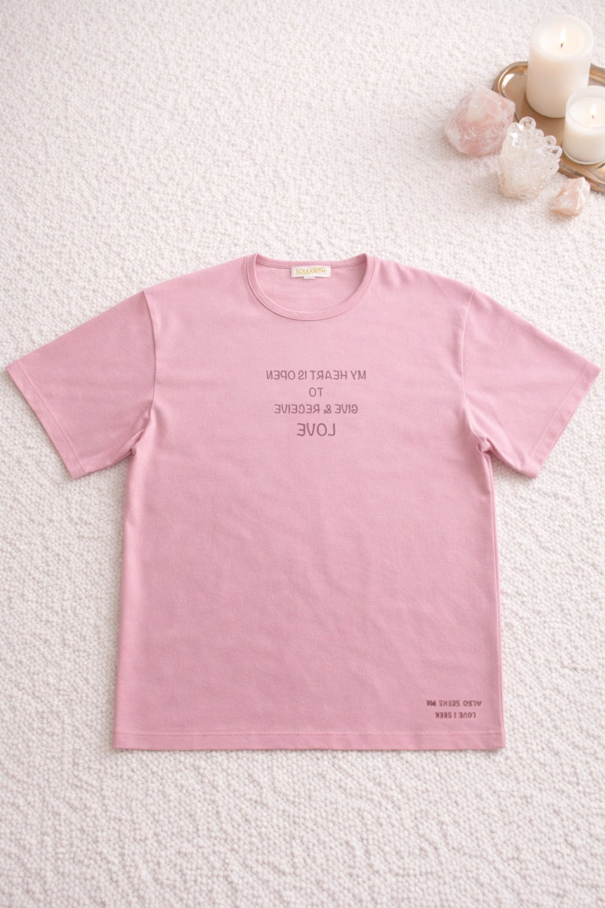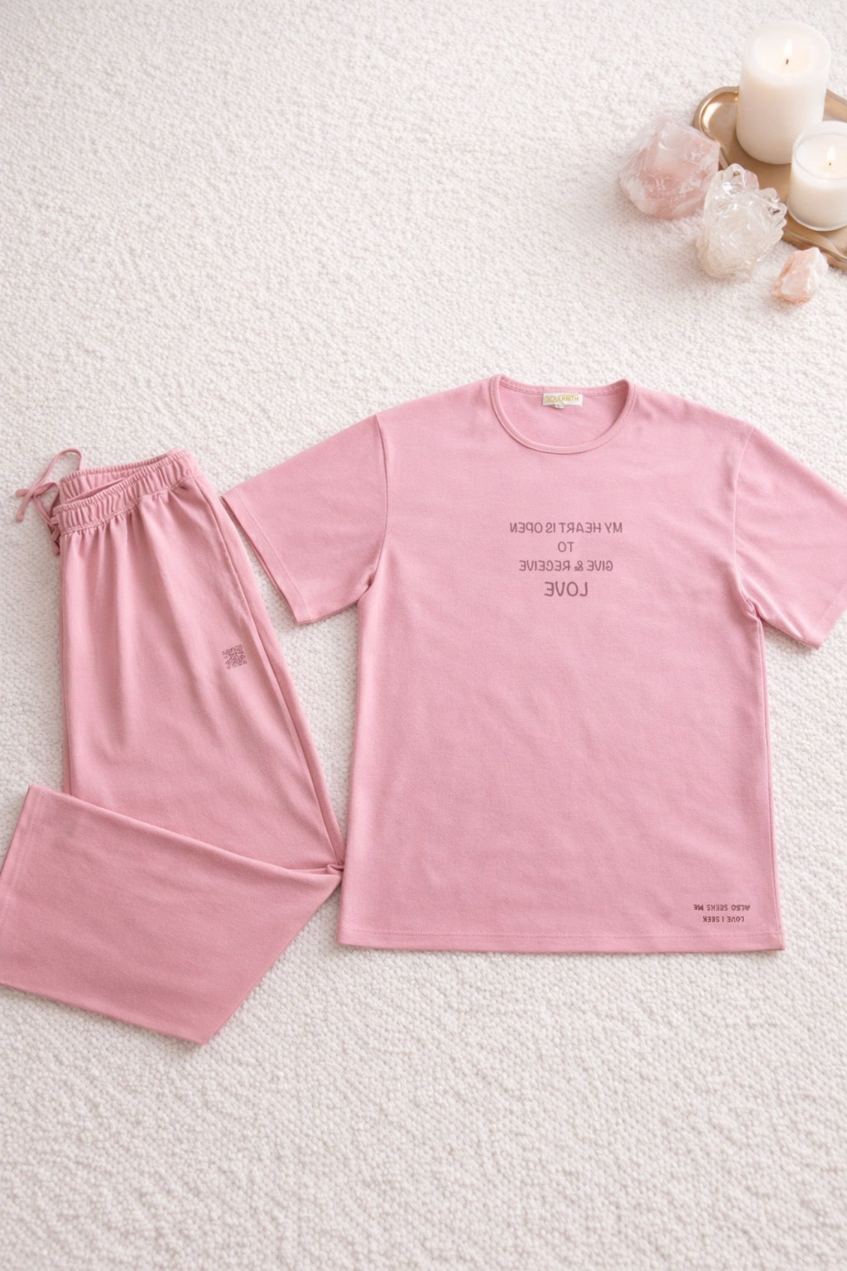 Love Affirmation Set in a loving Rose pink colour– for self-love and romantic energy as this tone activate the heart and root chakras, attracting affection, healing, and emotional warmth.