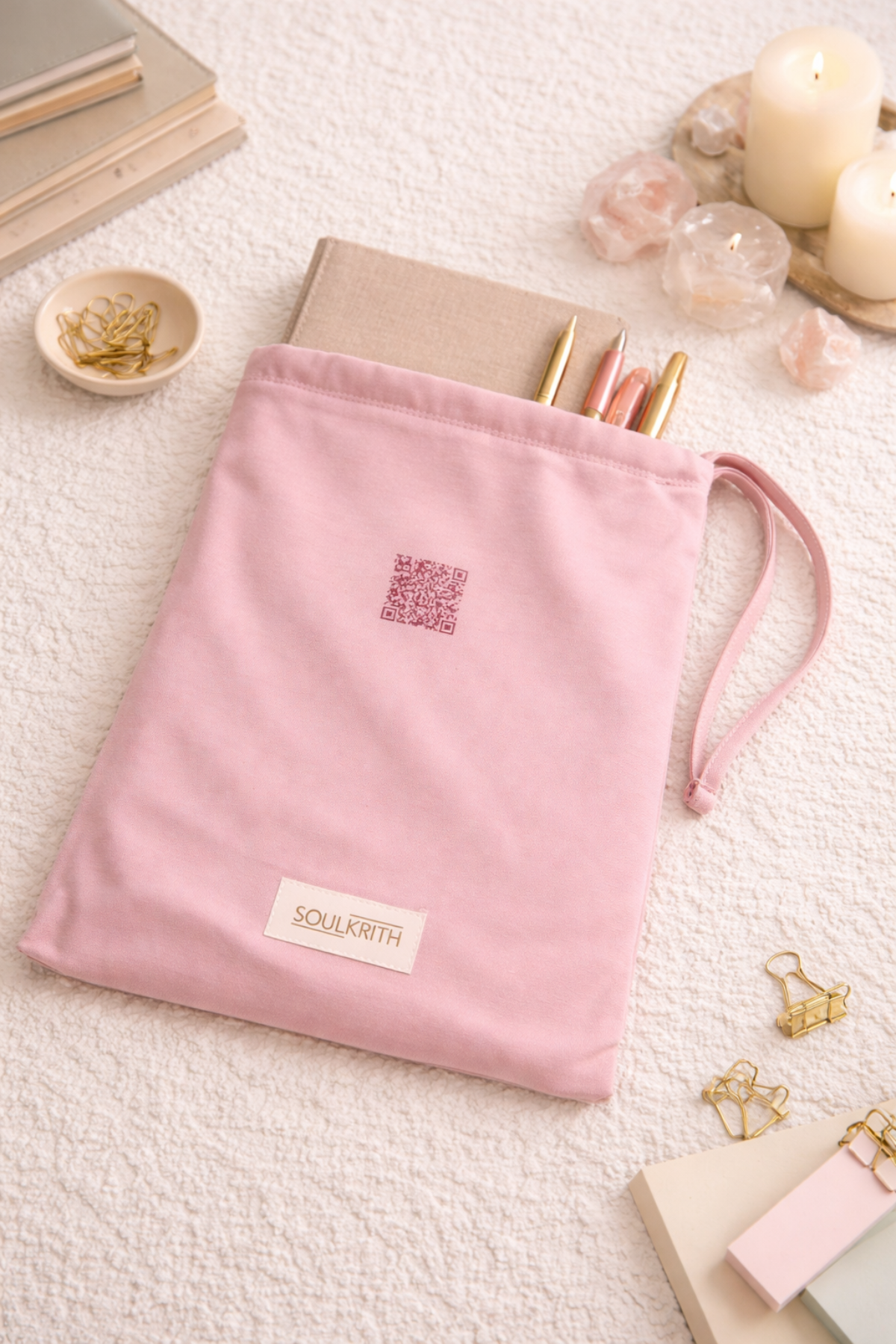The unique QR code on the set and pouch provides access to some amazing and exclusive affirmation audio guides to hear before you go to sleep or even while taking your morning walk!