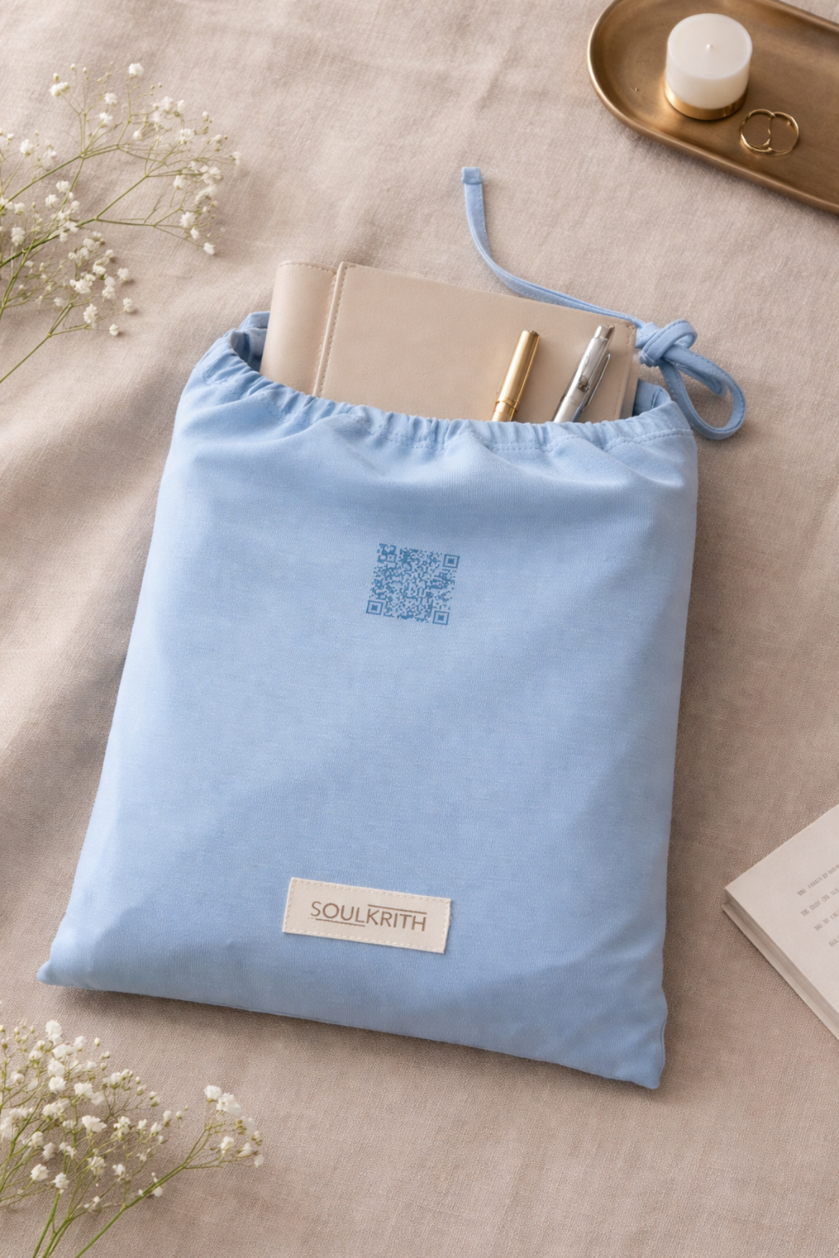 This sets come in a multi-purpose fabric pouch. The cloth bag is a perfect home for your manifestation journals, affirmations cards, or crystals.