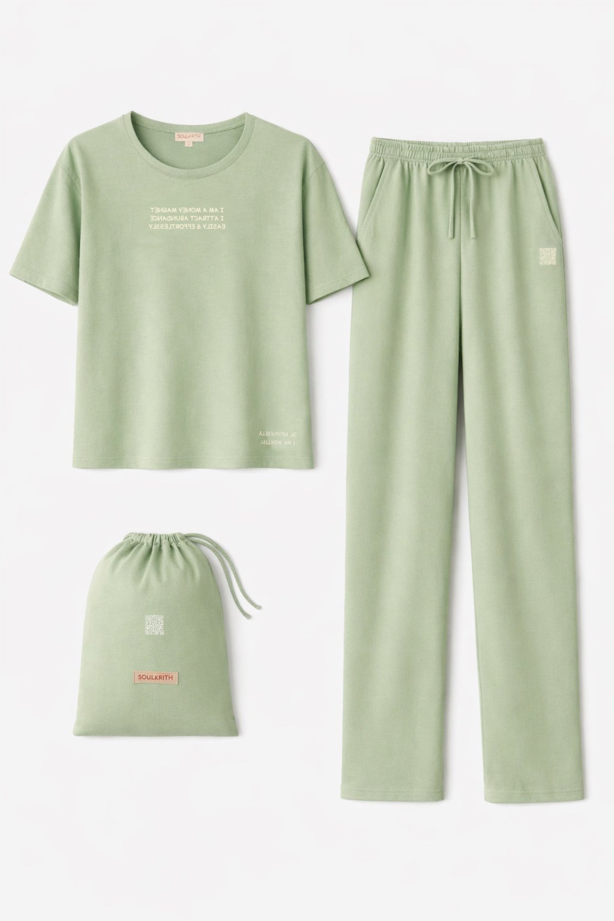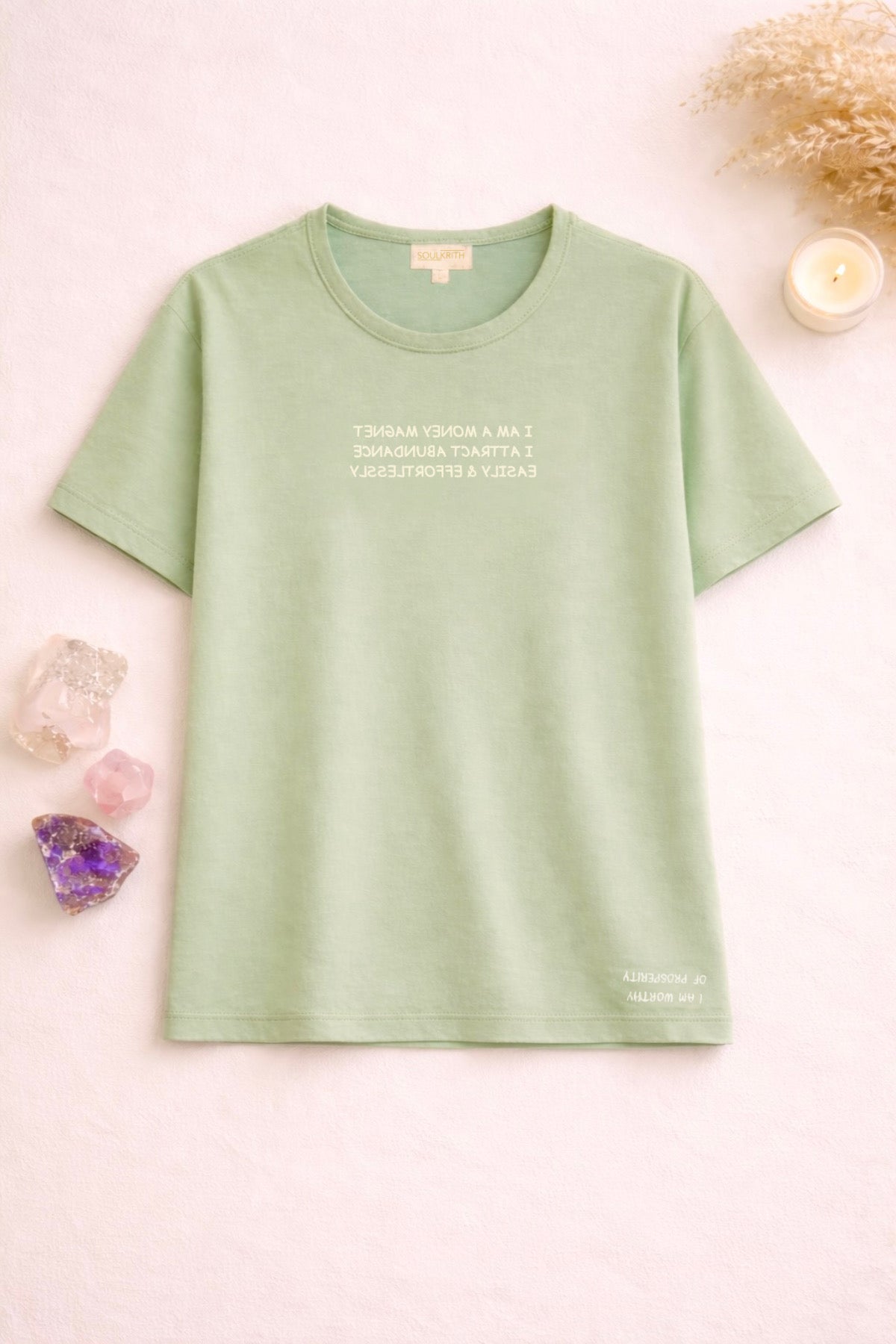 abu Affirmation Set in a soft green colour– symbolizes luxury, prosperity & magnetism. Fonts in gold tones activate your mindset for wealth and hold subconscious associations with value and success.